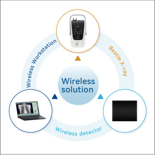 X-ray ünitesi, görüntüleme istasyonu ve kablosuz dedektör arasındaki kablosuz bağlantı, kısıtlama olmaksızın konumlandırmaya olanak tanır.